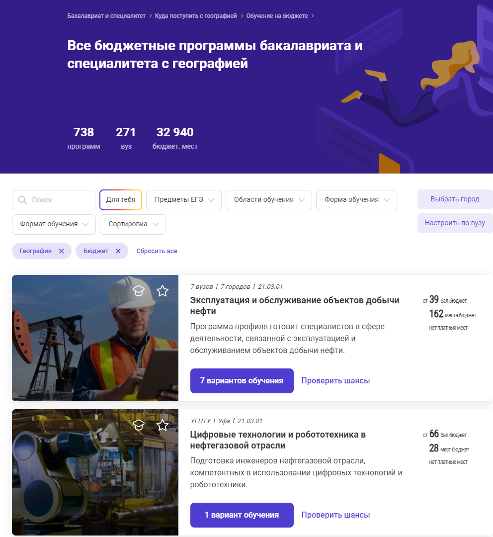 В 2024 году выделено почти 33 тысячи бюджетных мест для тех, кто выбрал в качестве профильного предмета географию, если верить предложениям агрегатора мест в вузах.