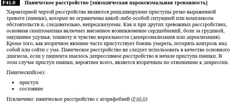 В ответ на естественную реакцию организма человек начинает фокусироваться на своём состоянии. Возникает боязнь за здоровье и жизнь, мысли «я умру», «у меня случится сердечный приступ» и тому подобные. Состояние записывается в память, и ребёнок начинает бояться собственной тревоги. Паника провоцирует новую. Как результат — внезапно возникающие приступы. В сложных случаях — паническое расстройство. Проще говоря, ПА — это симптом. А паническое расстройство — диагноз, который есть в Международной классификации болезней 10-го пересмотра (МКБ-10).