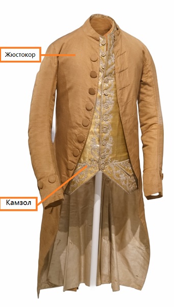 Мужская одежда с рукавами, играющая роль жакета. Такую одежду носили в Европе в XVII–XVIII века. Ботфорты — высокие, выше колена, сапоги для верховой езды.