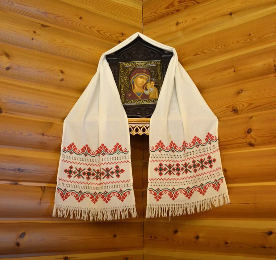 (передний, большой, святой) — духовный центр избы, обращён к юго-востоку. Здесь всегда стоял обеденный стол, висели иконы, украшенные ткаными и вышитыми полотенцами. С ним были связаны самые значительные события в жизни крестьянской семьи.