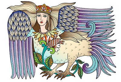 Райская птица-дева. Спускаясь из рая на землю, она зачаровывает людей своим пением, заставляет их забыть обо всём на свете.