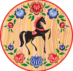 Русский народный художественный промысел, роспись деревянных изделий — досок, шкатулок, коробов. Городецкая роспись возникла в городе Городце Нижегородской области. Основные элементы этой росписи включают цветочные мотивы, сцены из жизни, животных и геометрические узоры. Отличительной чертой городецкой росписи является яркость красок, особенно красного, синего, зелёного и жёлтого цветов, а также своеобразная техника выполнения.