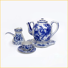 Русский народный художественный промысел, роспись керамики, в которой используют белые и синие краски.