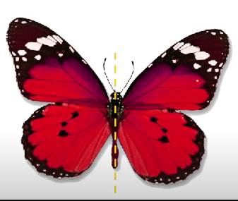 Строение предмета или композиции произведения, когда объект или изображение могут быть разделены на части, которые отражены друг относительно друга. При сложении по линии симметрии части рисунка совпадут.
