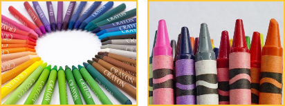 Художественные принадлежности, состоящие из воска и красителей, напоминающие цветные карандаши, но без деревянной оболочки.
