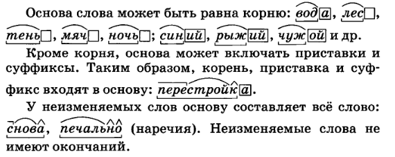 Часть слова без окончания. В неизменяемых словах основой является всё слово.